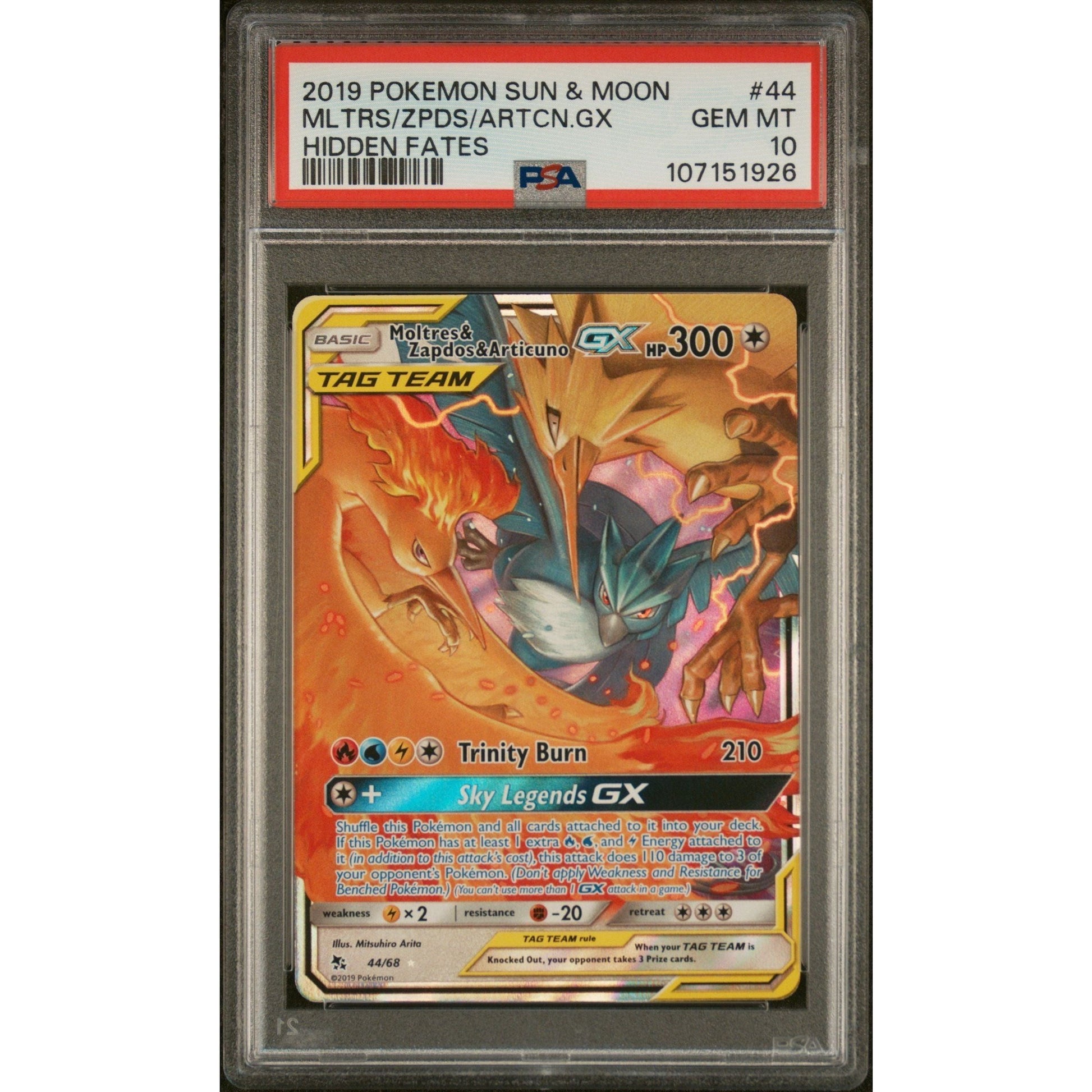 PSA 10 Moltres & Zapdos & Articuno GX 44/68 Hidden Fates Holo